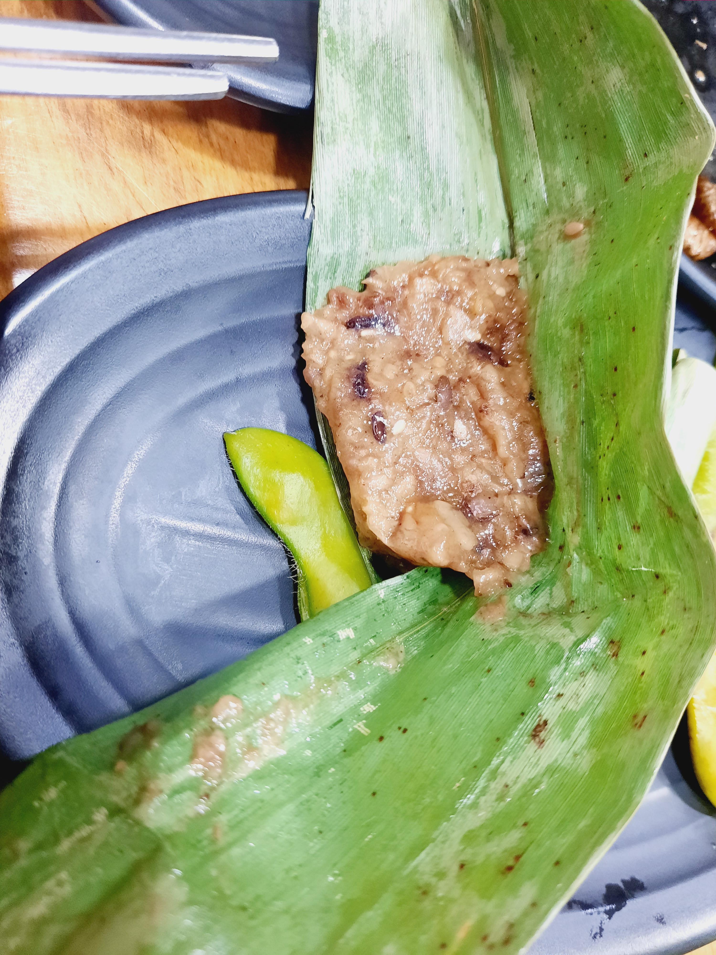 정학한건 아니지만 대나무잎 찹쌀밥은 특이하다고 생각했습니다. 물회집에서 줄거라는 생각도 못했으니까요.
