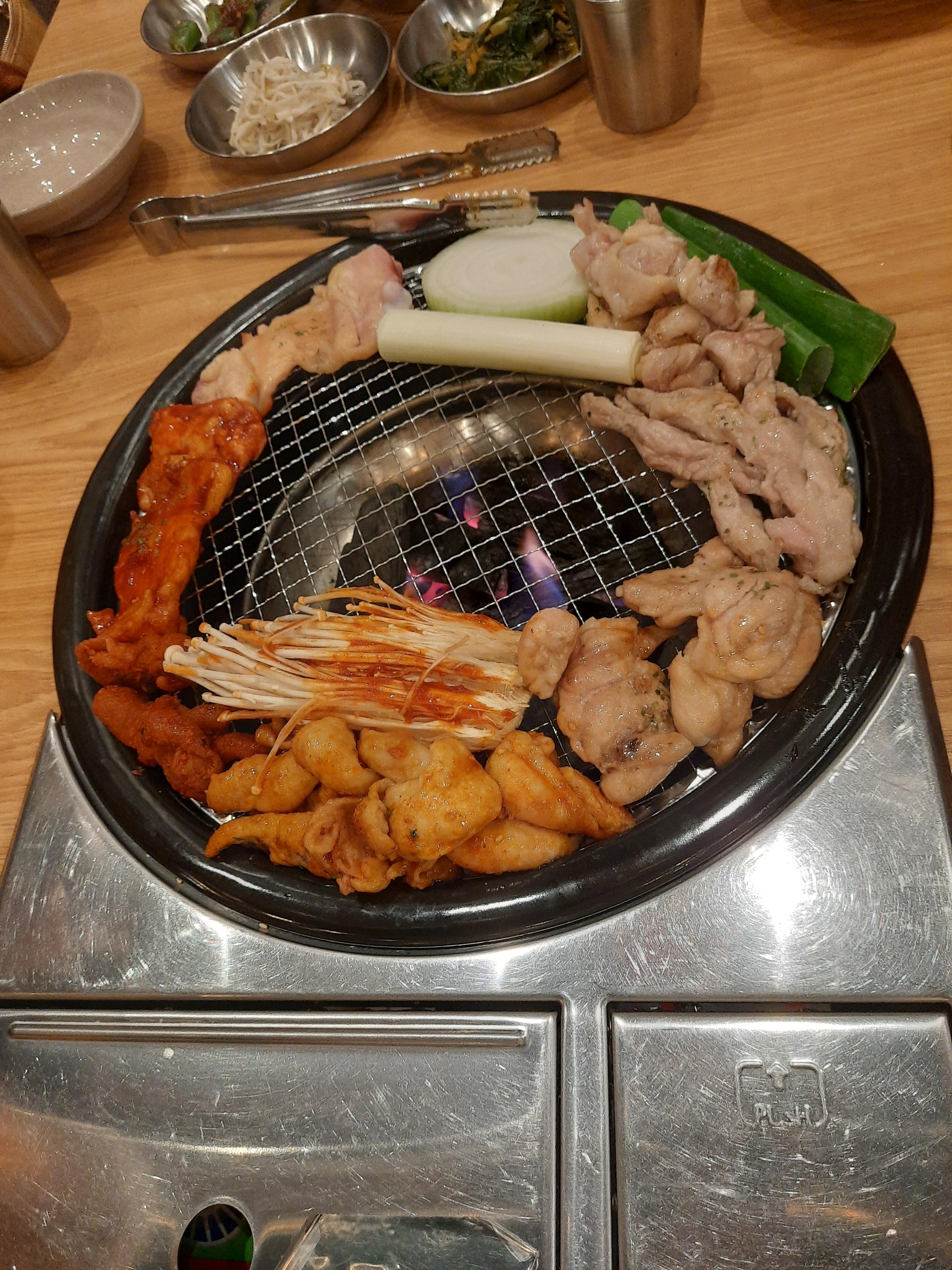 초벌이 된 상태로 나와서 익히기 위한 시간을 단축시켜주겠다라고 생각을 했는데 가스를 이용한 숯불이라서 굽기가 살짝 어렵네요. 가운데로 올리면 타고 겉에서 익히면 시간이 쫌 오래걸리네요.
