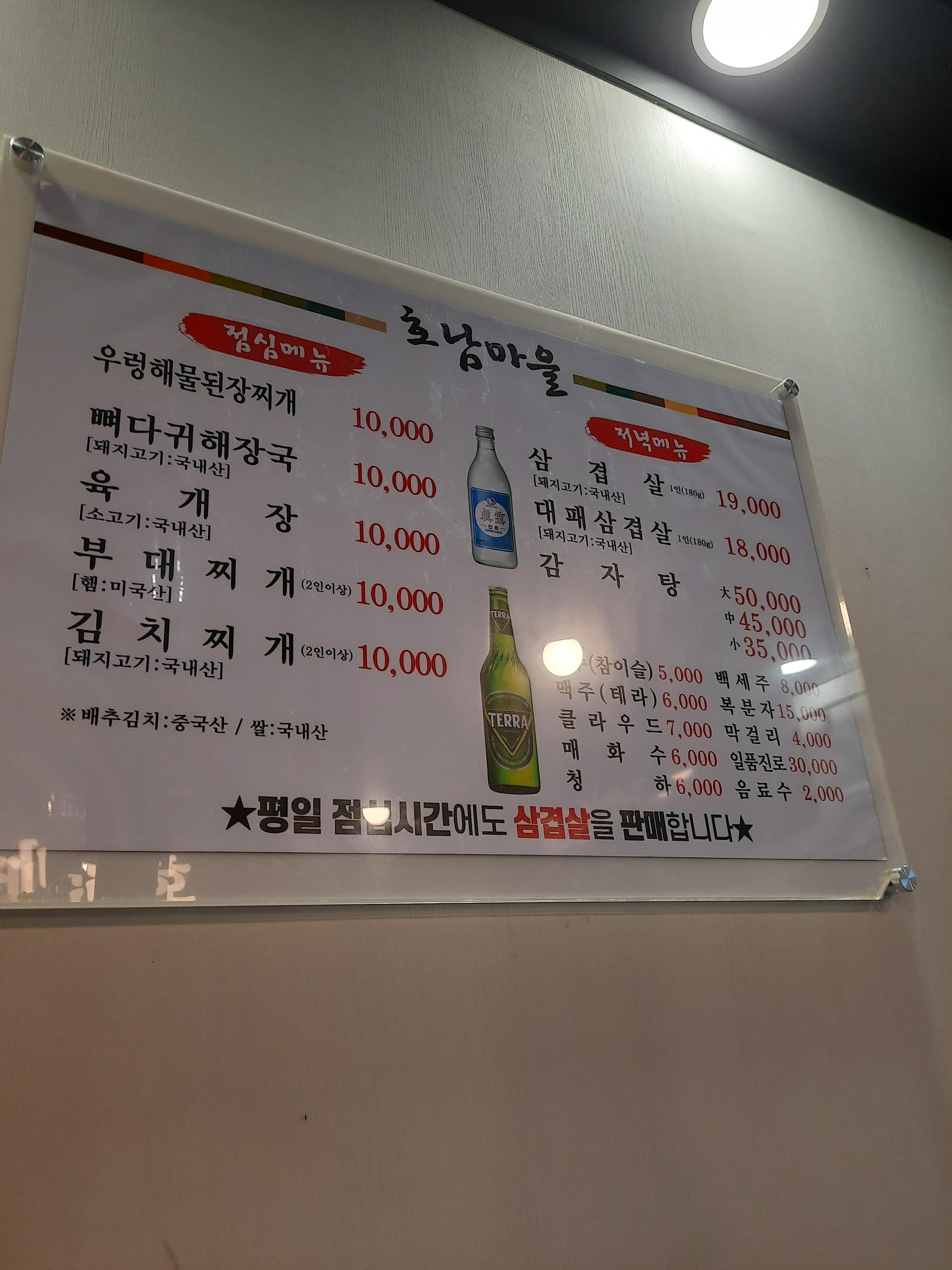 그런데 호남마을 식당의 대패삼겹살 가격을 보고 살짝 노랐습니다. 대패삼겹살이 18,000원이라고? 작년에는 16,000원이었는데 가격이 올랐네요. 최근 일반적인 식당의 대패삼겹살이 비싸다 싶으면 13,000원이니까요.