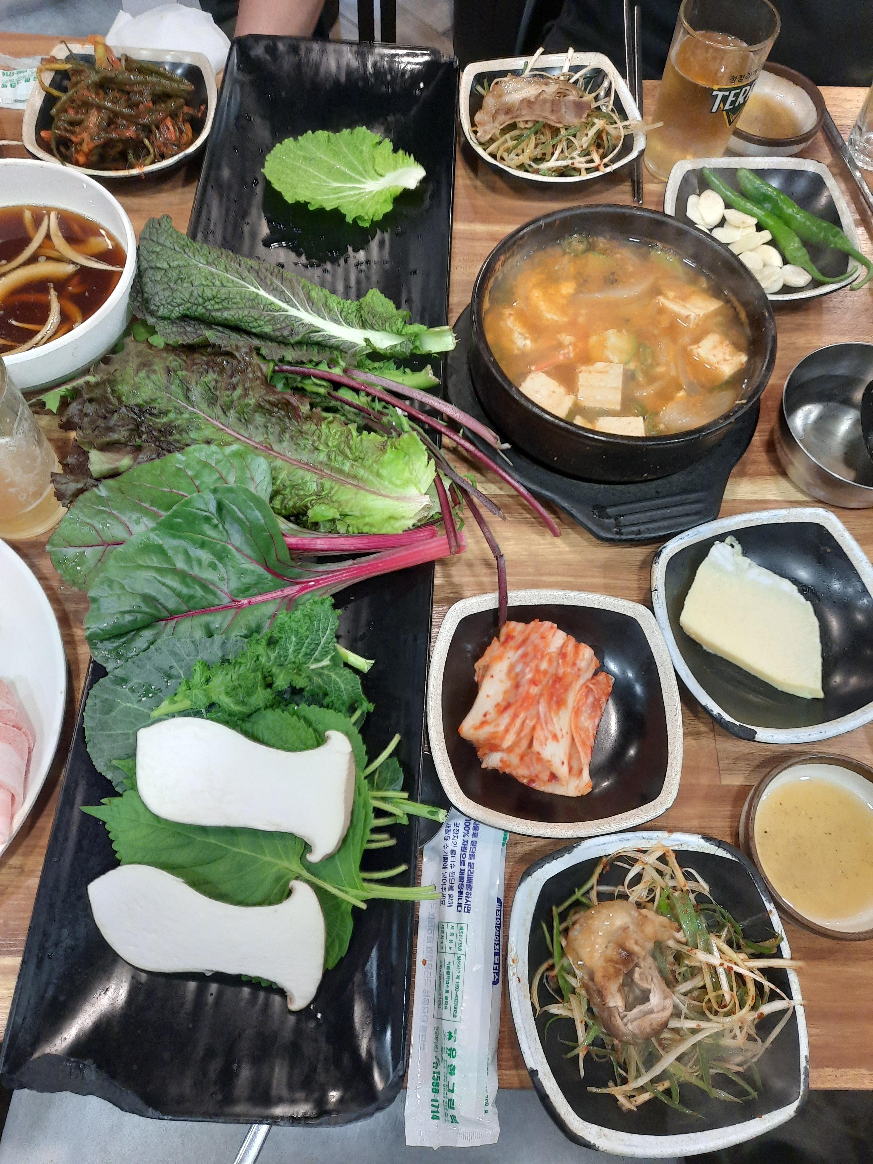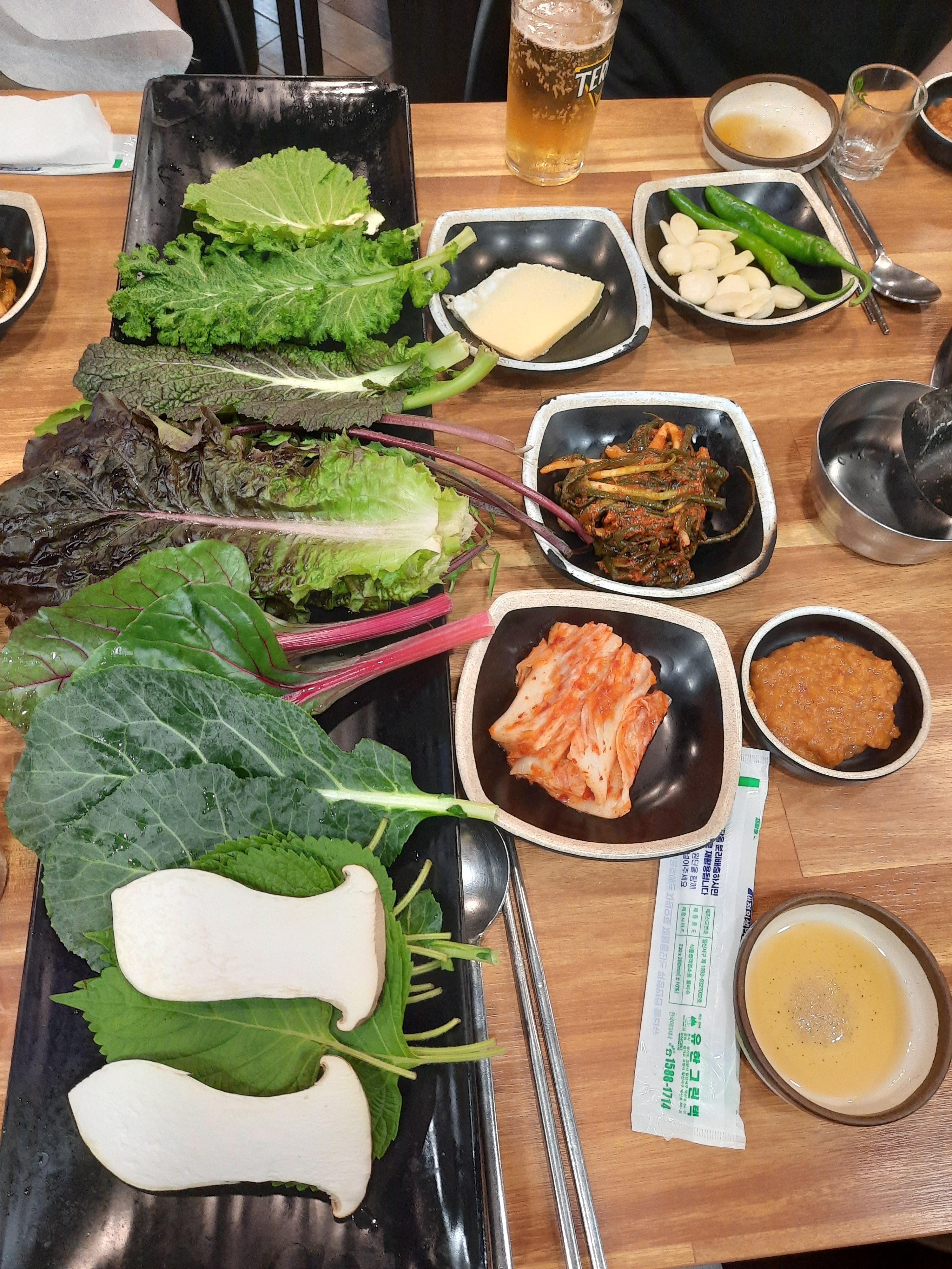 삼겹살에 여러가지 쌈채소를 싸서 먹고 싶다면 한번 와보세요.