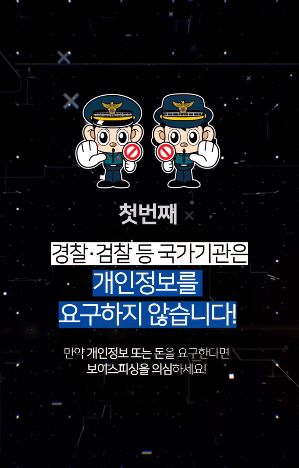 첫번째 : 경찰, 검찰 등 국가기관은 개인정보를 요구하지 않습니다.