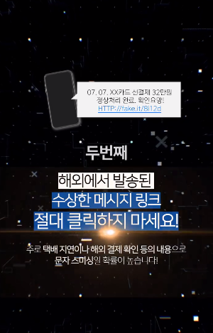 두번째 : 해외에서 발송된 수상한 메시지 링크 절대 클릭하지 마세요!