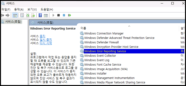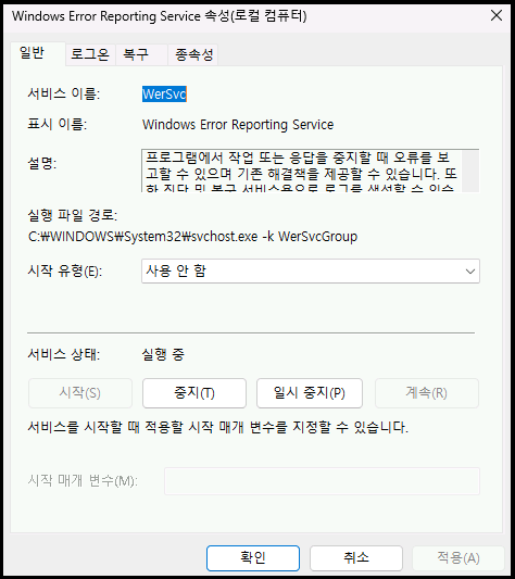 2. Windows Error Reporting Service (WerSvc)를 떠블클릭