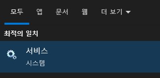 1. 작업표시줄돋보기 검색란에 '서비스' 또는 'service' 입력후 위에 서비스를 클릭하세요.