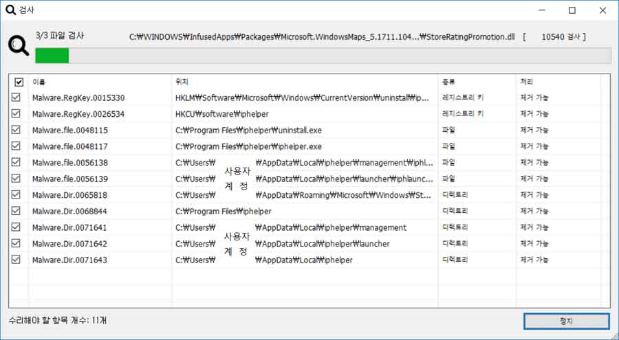 2015년에 배포가 많이 되었던 광고 프로그램인데 아직도 삭제가 안된 컴퓨터가 있습니다.