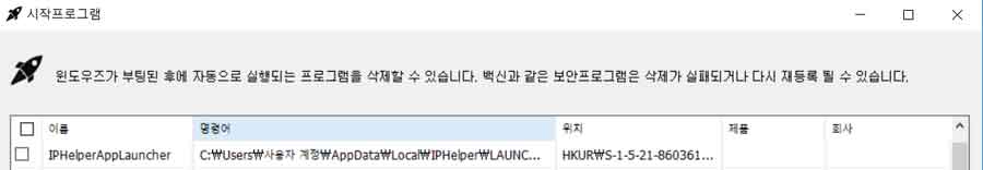 "이지클린 (EzClean) - 시작프로그램"을 실행하니 IPHelperAppLauncher가 등록되었습니다.