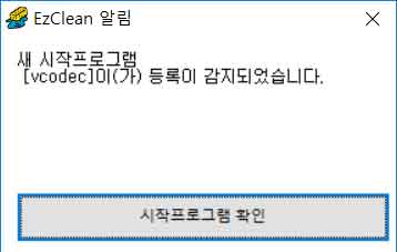 1. 브이코덱(VCodec)이 설치되면 이지클린 (EzClean) 시작프로그램 등록 알림창이 뜹니다.