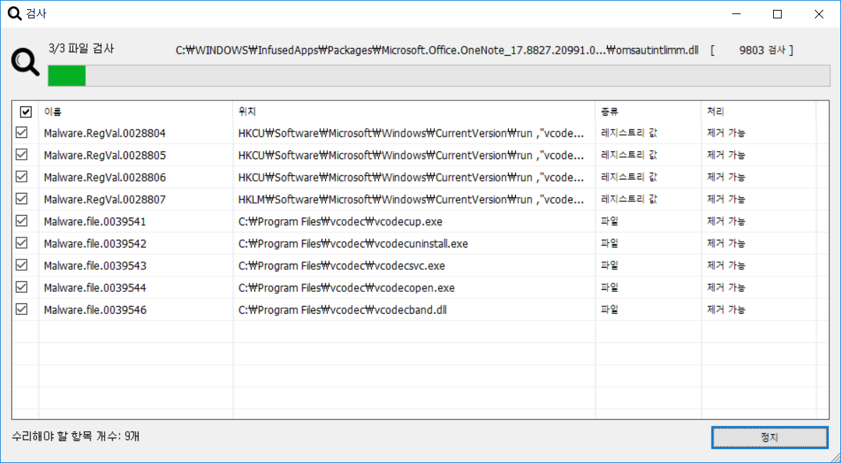 5. 브이코덱(VCodec) 프로그램이 목록에서 보이지 않는다면 "이지클린 (EzClean) - 검사"를 이용하세요.