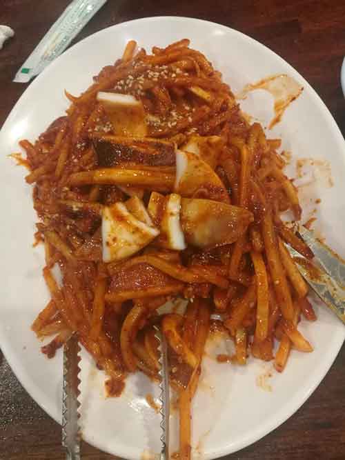 음 오징어 보쌈이 무채와 오징어가 양념장으로 묻여있는 것이었네요.