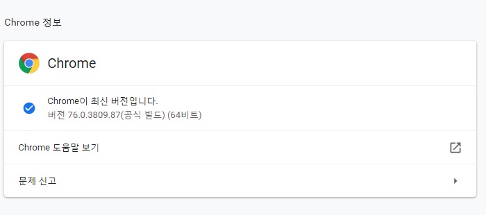 크롬 업데이트는 크롬 설정(chrome://settings/)에서 "Chrome 정보" 한번 클릭하면 버전 확인 후에 업데이트 할 수 있습니다.