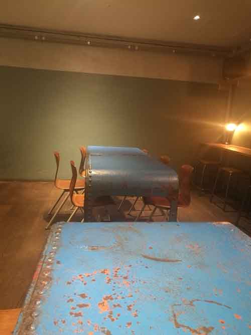 테이블이 철재소재로 만들어진 빈티지 테이블이네요.