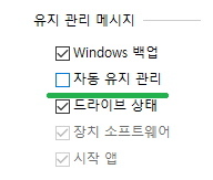 1-3. '유지 관리 메시지'에서 '자동 유지 관리' 체크 해제