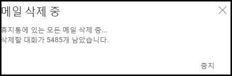 여기까지가 끝은 줄 알았죠? 받은편지함까지만 일괄삭제한 것이고 휴지통으로 넘어간 메일들도 삭제를 해줘야합니다.