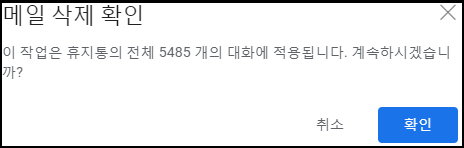 4. '일괄 작업 확인'에서 확인 눌러주고 잠깐 기다리면 받은 편지함들이 삭제됩니다.