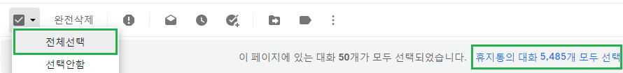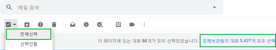 그러면 전체보관함의 대화 5,427개 모두 선택 이 표시됩니다.