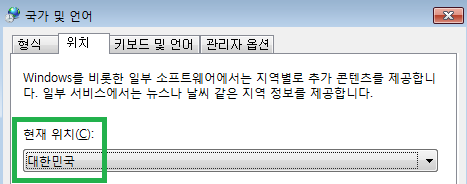 확인한 결과 한국어, 대한민국으로 설정이 되어있어 별다른 문제가 없는 듯이 보입니다.