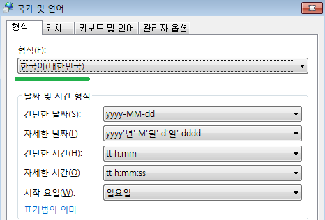 1. '설정 - 제어판 - 국가 및 언어' 들어가세요.