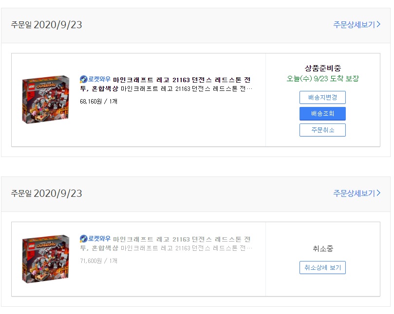 그래서 전에 주문한거 취소하고 다시 재주문...