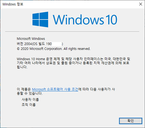 버전 2004(OS 빌드 190***)