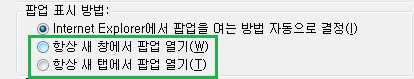 인터넷 익스플로러 새창 또는 새탭으로 열기