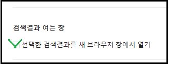 4. 검색결과 여는 창 - 선택한 검색 결과를 새 브라우저 창에서 열기를 체크해주면 됩니다.