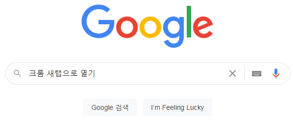 1. 크롬을 실행하고 구글 사이트를 엽니다. 검색란에 '크롬 새탭으로 열기'를 검색해보겠습니다.