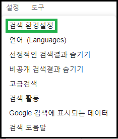 3. 설정을 클릭 후 검색 환경설정 을 선택