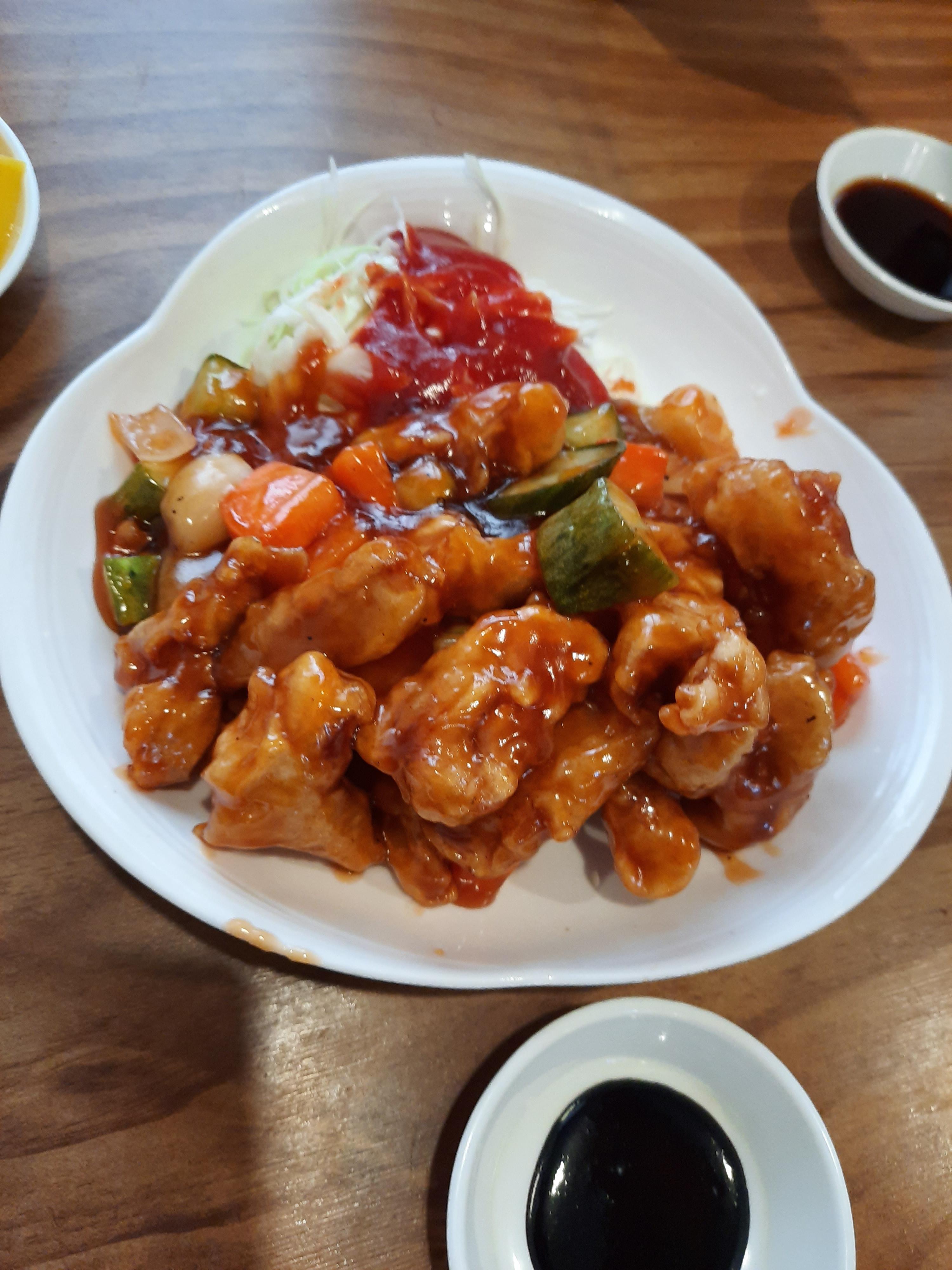 부먹이냐 찍먹이냐로 고민할 필요없이 미리 버무려서 나오는 탕수육. 보기에 너무 먹음직스럽네요. 그러나 뭐지? 왜 쫌 시큼함이 높네. 옛날식 탕수육인가? 개취일수도 있겠지요.