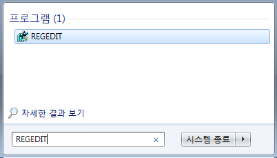 2. '윈도우 키 + R' 또는 작업표시줄 돋보기에 'REGEDIT' 검색 후 실행하세요.