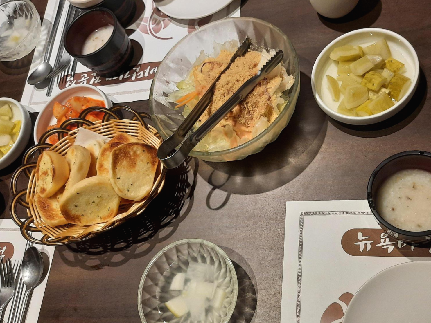 땅콩 소스가 들어가 샐러드와 잘 구워지 모닝빵(?)이 제일 맛있더라고요 ㅋ