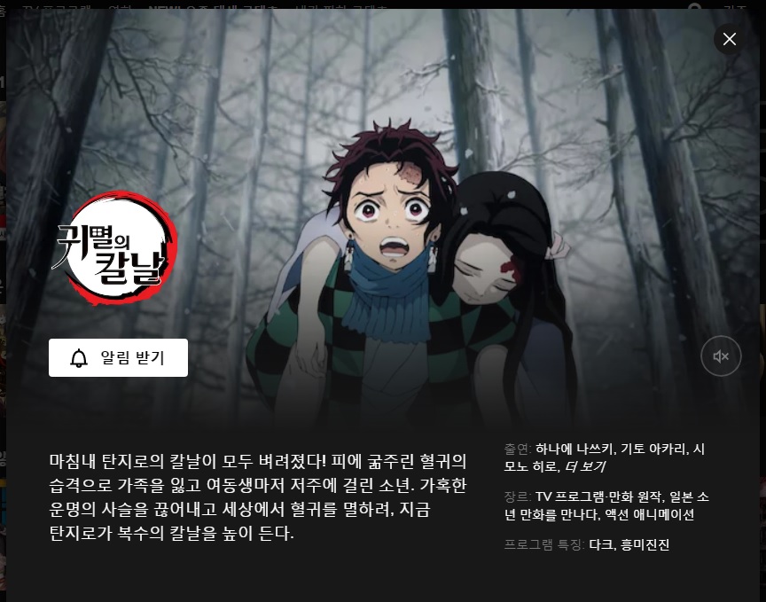 '귀멸의 칼날' 시즌1. 넷플릭스에서 2021년 2월 21일부터...