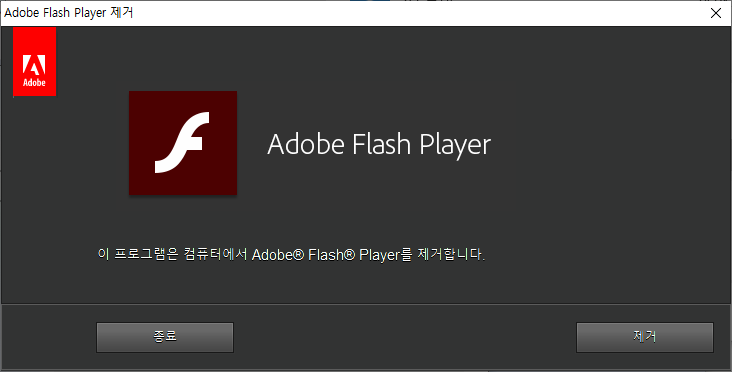 이 프로그램은 컴퓨터에서 Adobe Flash Player를 제거합니다. - 제거