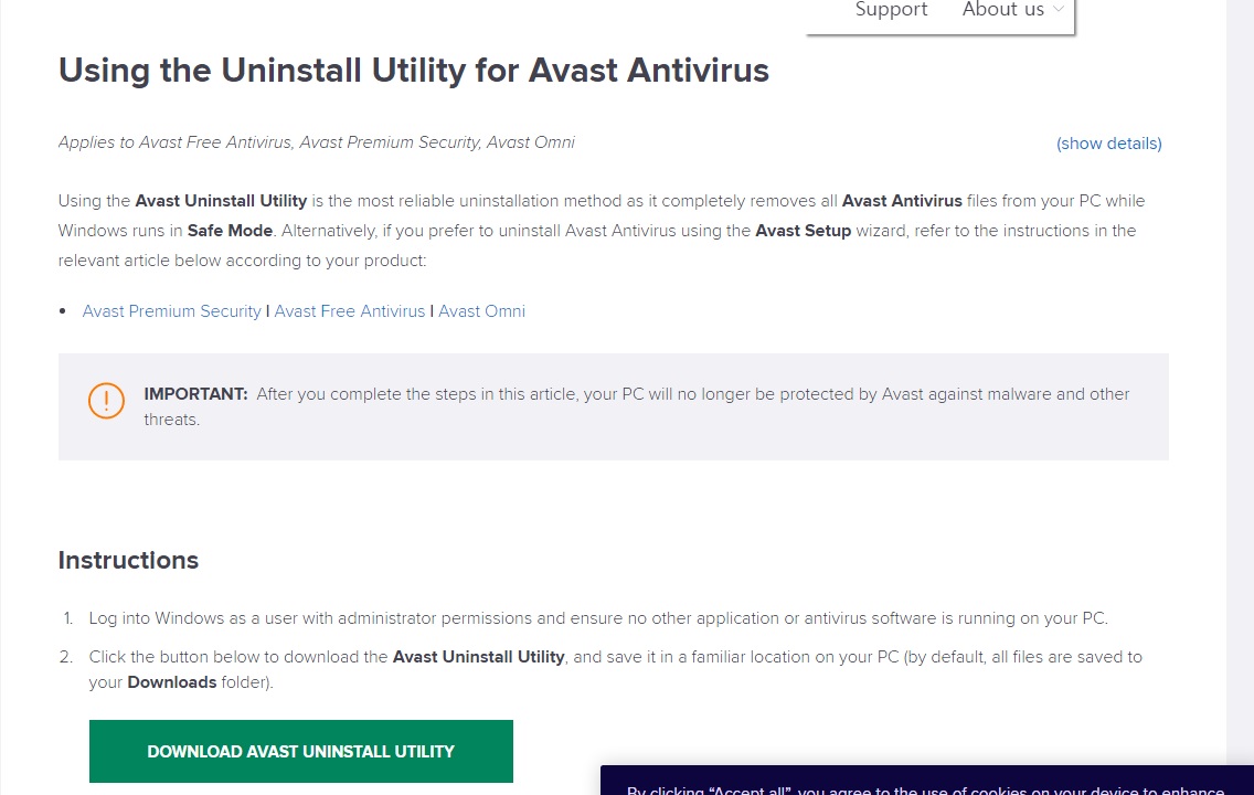 Using the Uninstall Utility for Avast Antivirus | Official Avast Support
