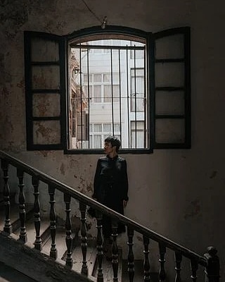 한쪽 얼굴은 어둡고 우울하며 다른 한쪽 얼굴은 따뜻하고 밝다.