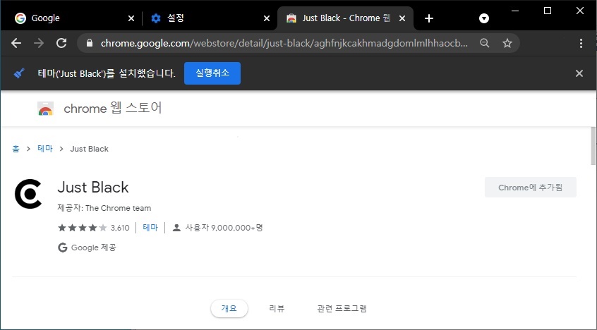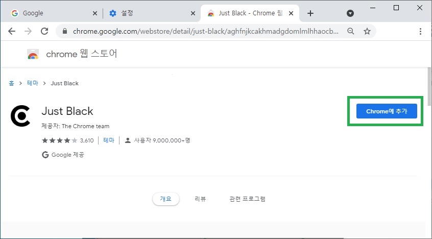 검정 화면을 선택하고 Chrome에 추가 클릭