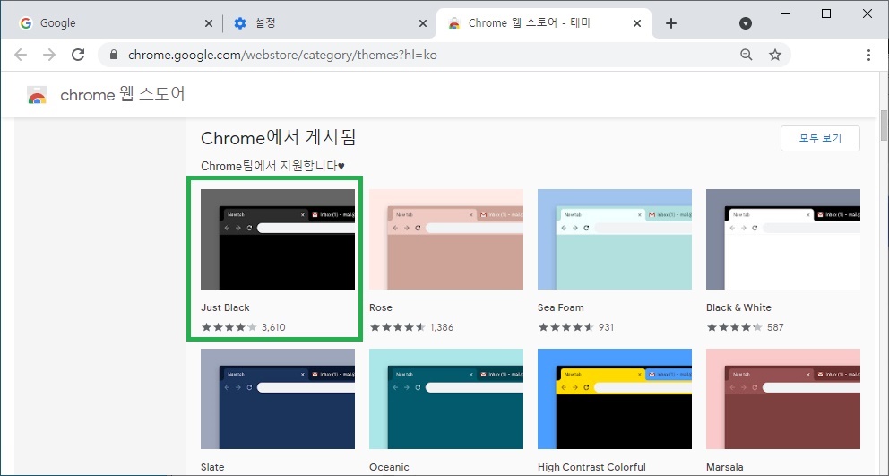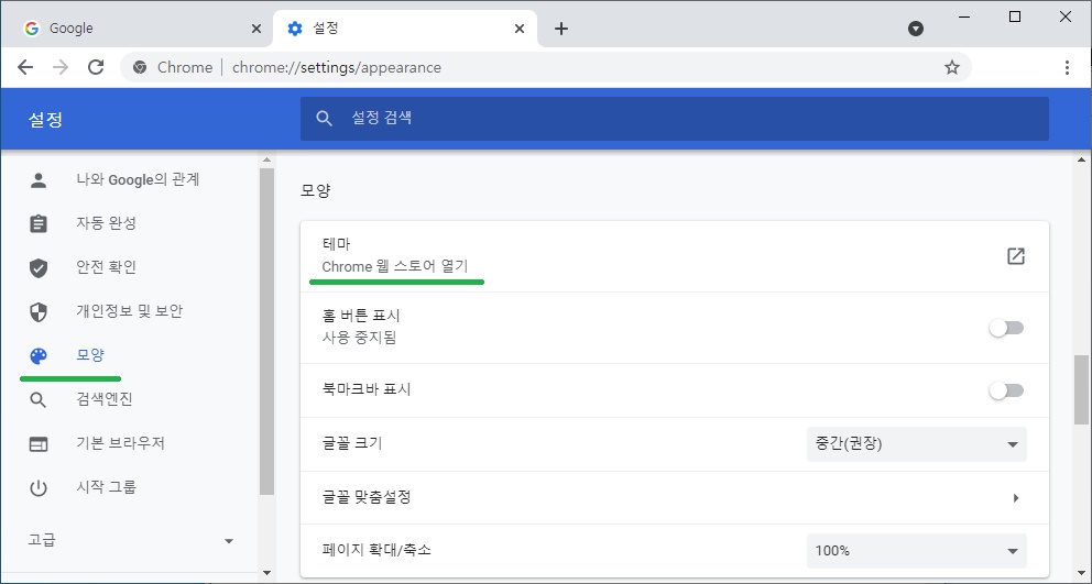 모양 - 테마(Chrome 웹 스토어 열기) 클릭