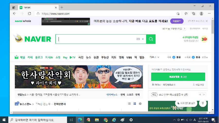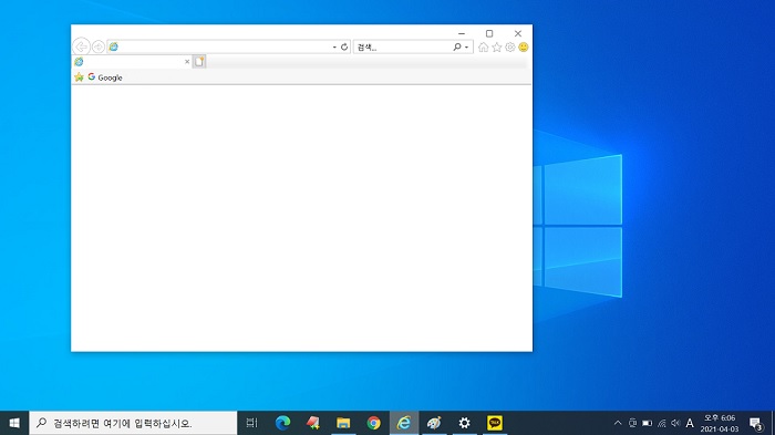 인터넷 익스플로러 Internet Explorer를 실행했습니다.
