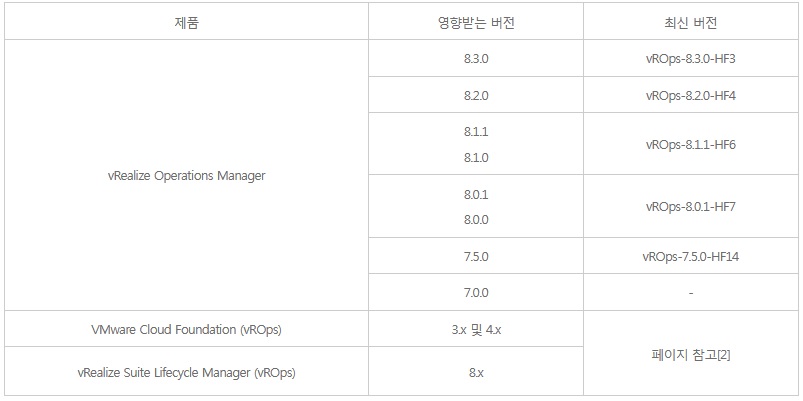 o vRealize Operations, Cloud Foundation, vRealize Suite Lifecycle Manager에서 입력값 검증이 미흡하여 발생하는 SSRF 취약점(CVE-2021-21975) 등 2개 [1]