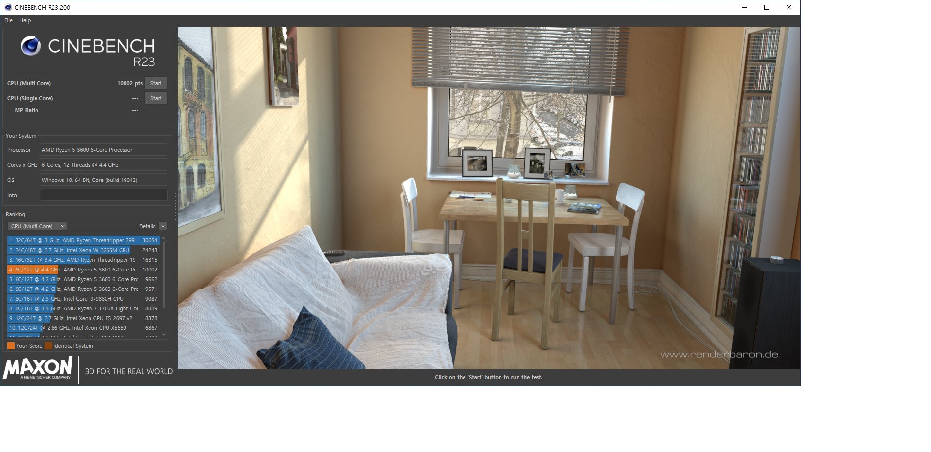 라이젠 3600 4.4 오버클럭. 씨네벤치 R23