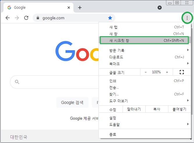 구글 실행 후 삼점 - 새 시크릿 창을 클릭
