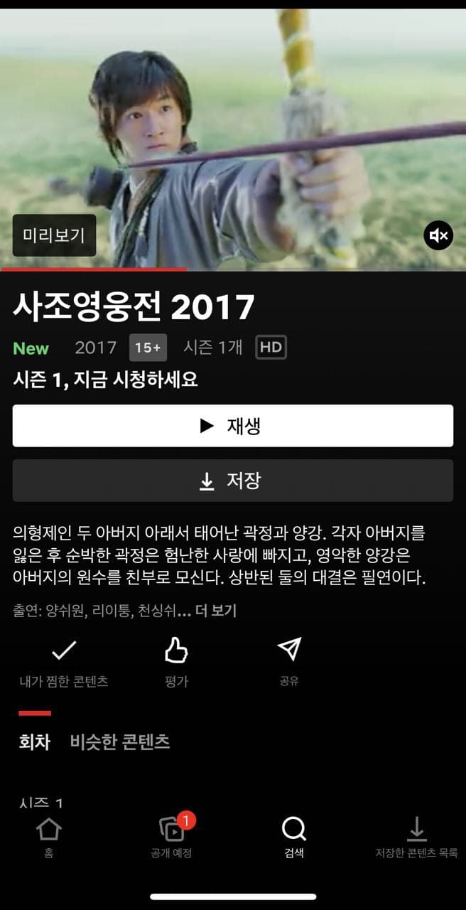 최근에 넷플릭스에 들어간건가 "의천도룡기 2019"를 보고 사조영웅전과 신조협려 둘다 찾아도 없었는데 사조영웅전 2017이 등록이 되었군요.