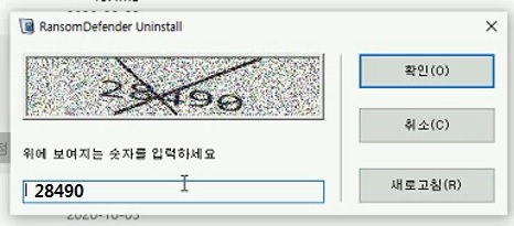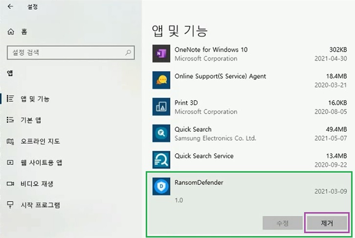 5. RansomeDefender를 찾아서 삭제 클릭