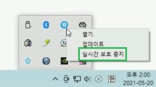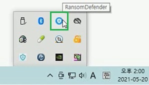 1. 작업 표시줄 오른쪽에 트레이 아이콘 중에 RansomeDefender 프로그램 찾아주세요.