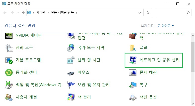 작업 표시줄 - 돋보기 - 제어판 검색 후 클릭