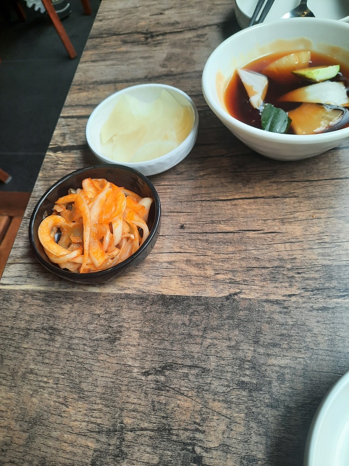 기본 반찬 2종이 나오고 우리는 짬뽕(12,000원)과 목화솜탕수육(21,000원) 주문했습니다. 타 중국집보다 가격이 높네요. 그래도 자리에 앉았으니 메인을 먹어보자 해서 주문했죠. 언제 또 오겠나하고 ㅋ